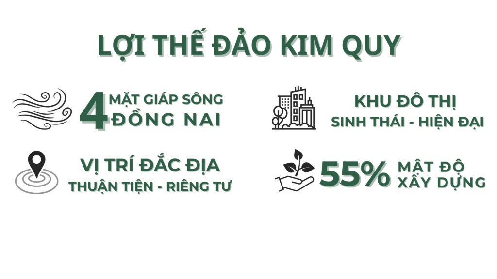 Ngoài ra do vị trí của Đảo Kim Quy nằm tại Phường Tân Vạn, TP Biên Hòa nơi được xem là đông cư dân nhất Tp Biên Hòa nên cũng được thừa hưởng nhiều tiện ích chỉ mất khoảng 5 phút đi xe.